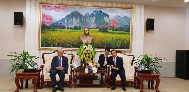 पूर्वप्रधानमन्त्री नेपालले ‘सुखी नेपाली समृद्ध नेपाल’को नाराका साथ आफ्नो पार्टीले नेपालमा शासन सुरु गरेको एक वर्ष भएको, यस अवधिमा जनतामा आत्मविश्वास जागेको, विकासले सही दिशा पक्रिएको र आधार तयार भइसकेकाले अब परिणाम दिने गरी काम भइरहेको चर्चा गर्दै ठूला विकास परियोजनाका लािग लाओसको अनुभव आफूहरुलाई उपयोगी हुने विश्वास व्यक्त गर्नुभयो । उहाँले भन्नुभयो, ‘हामी दुबै अति कम विकसित मुलुक हौँ, भूपरिवेष्ठित छौँ । हामीसँग पुँजी र प्रविधि कम छ । यस्तो अवस्थामा तपाईंहरुले अपनाएको विकासको मोडल हाम्रा लागि उपोगी हुन सक्छ ।’ पछिल्ला दिनमा लाओसले हासिल गरेको तीब्र आर्थिक बृद्धिका लागि उहाँले पार्टी नेतृत्वलाई बधाई दिनुभयो ।