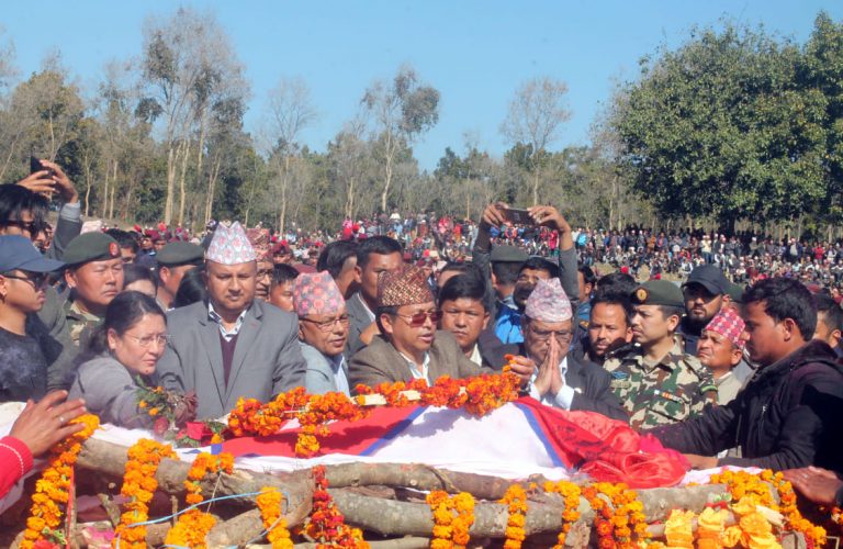 उहाँको जन्मस्थान दंगीशरण गाउँपालिका–६ बागर नजिकै चिरेघाटखोलामा अन्त्येष्टि गरिएको छ । प्रदेश नम्बर ५ सरकारको निर्णयअनुसार नेपाल प्रहरीको शोक सलामीसहित उहाँको अन्त्येष्टि गरिएको हो ।