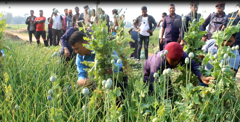 ‘प्रतिबन्धित अफिम खेती हुने गरेको लामो समयदेखि हामीले सूचना पाएका थियौं’, मोरङका प्रहरी प्रवक्ता डिएसपी घनश्याम श्रेष्ठले भने, ‘कोपिला लागेको र काट्ने बेला भएको अवस्थामा हामीले खेती नष्ट गरेर संलग्नलाई कारवाहीको दायरामा ल्याएका हौं।’ अफिम खेतीप्रति कठ्ठामा २ किलोसम्म हुने गरेको डिएसपी श्रेष्ठको भनाइ छ।