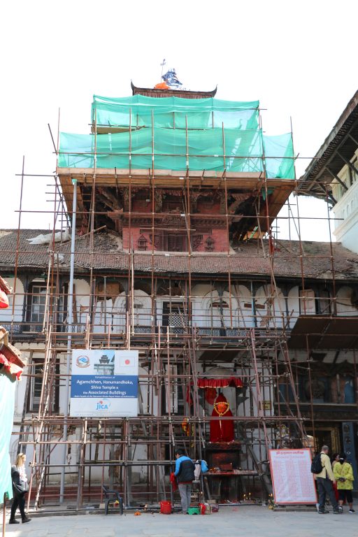 भूकम्पपछि क्षति भएका संरचनाहरु पुनर्निर्माण गर्ने क्रममा आगम्छे मन्दिरको पुनर्निर्माणको जिम्मा जापान सरकारलाई प्रदान गरिएको थियो ।