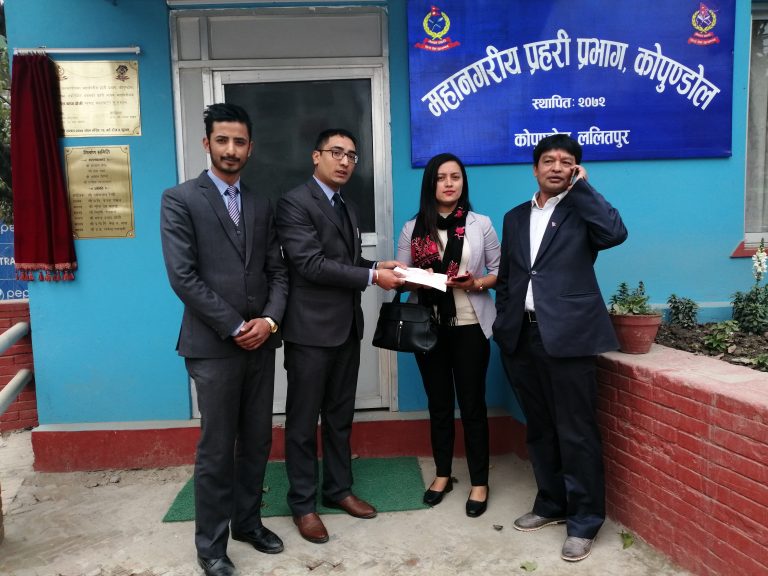 सो चेक मुक्तिनाथ विकास बैंक लि.कुपण्डोल शाखाका प्रमुख मधु श्रेष्ठले महानगरीय प्रहरी प्रभाग, कुपण्डोलकी पूर्व प्रहरी निरीक्षक श्री चेतना पोखरेललाई हस्तान्तरण गनुभयो ।