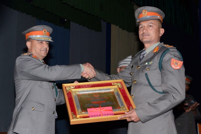 त्यसैगरी सशस्त्र प्रहरी महानिरीक्षक शैलेन्द्र खनालले सशस्त्र प्रहरी नायव उपरीक्षक देवराज अर्याललाई बेष्ट रिसर्च अवार्ड प्रदान गर्नुभयो ।