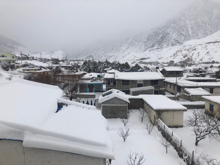 वर्षासँगै परेको भारी हिमपातका कारण म्याग्दीसँग सीमा जोडिएको मुस्ताङको घाँसा तथा लेतेसम्मै बाक्लो हिमपात भएको जिल्ला प्रहरी कार्यालय मुस्ताङले जनाएको छ । यसभन्दा पहिले नै परेको हिउँ पग्लिन नपाउँदै पुनः परेको हिमपातका कारण मुस्ताङको जनजीवन नराम्रोसँग प्रभावित बनेको छ । हिमपात र वर्षाले अत्यधिक चिसो बढेपछि सर्वसाधारण घरभित्रै आगो बालेर बस्न बाध्य भएका छन् ।