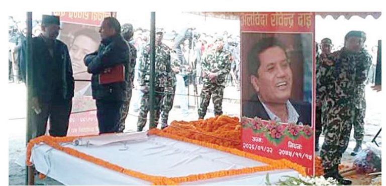 ताप्लेजुङमा भएको हेलिकोप्टर दुर्घटनामा निधन भएका संस्कृति पर्यटन तथा नागरिक उडड्यनमन्त्री रविन्द्र अधिकारीलाई आज शुक्रबार विहान ८ बजे राष्ट्रिय सम्मान दिइने भएको छ ।