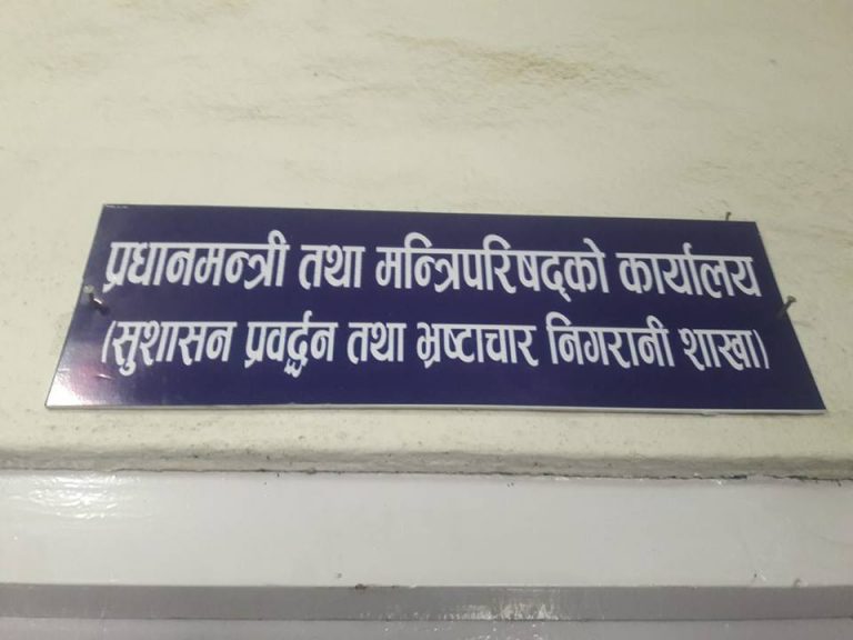 प्रधानमन्त्री तथा मन्त्रिपरिषद्को कार्यालयअन्तर्गतको सुशासन प्रवद्र्धन तथा भ्रष्टाचार निगरानी शाखा सिंहदरवारभित्र उर्जा, जलश्रोत तथा सिँचाई मन्त्रालयमा रहेको छ ।