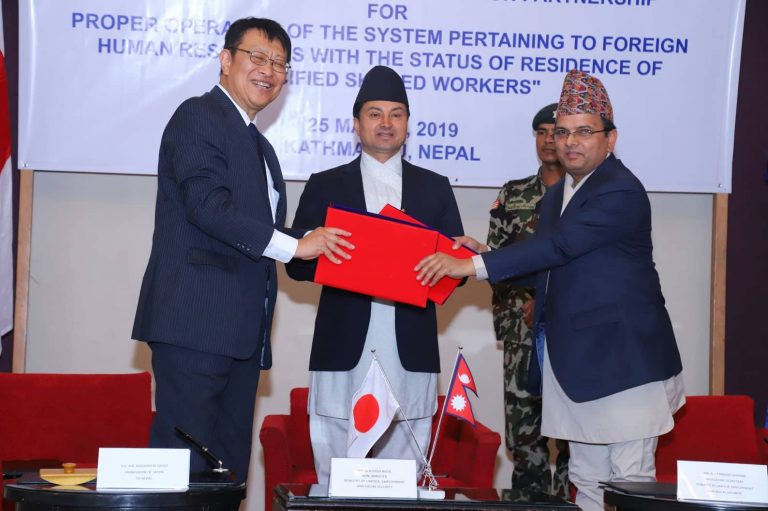 काठमाडौं, (नेस) । नेपाल र जापानबीच श्रमिक आपूर्तिबारे दुई देशबीच सोमबार समझदारी भएको छ । एक कार्यक्रमकाबीच नेपाल र जापान सरकारबीच कामदार आपूर्तिबारे ‘एमओयु’ मा हस्तक्षर भएको छ ।