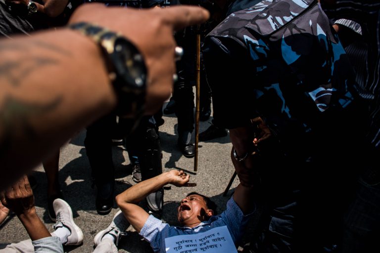 प्रर्दशनको क्रममा प्रहरीले प्रर्दशकारीमाथि लठ्ठी चार्ज तथा पानीको फोहरा प्रहार गरेको छ।
