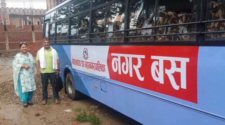 नेपाल समाचारपत्र, बाँके। ‘एक जना यात्रु भए पनि हाम्रो बस गन्तव्यसम्म पुग्छ। बसमा जेष्ठ नागरिक, अपाङ्गता, विद्यार्थीलाई व्यवस्थाअनुसार छुट दिन्छौं, नगरबस सञ्चालनको संघारमा रहेको नेपालगञ्ज उपमहानगरपालिकाका प्रवक्ता प्रमोद रिजालले भन्नुभयोे– ‘साझा बस जसरी नै हाम्रो नगर बस सञ्चालनमा आउँछ।’