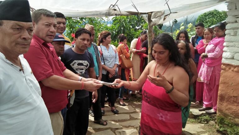 पर्वतको कुश्मा नगरपालिका– २ खुर्कोट बुढीस्वाँरामा गएको पहिरोमा पुरिएर मृत्यु भएकालाई कुस्मा नगरपालिकाले एक लाख राहत दिएको छ ।