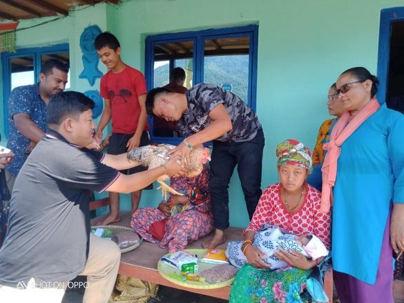 वडा नं ८ का वडाध्यक्ष चरीबहादुर तामाङले सात दिनकी सुत्केरी महिला सन्चमाया तामाङ र ङेमा तामाङको घरमै पुगेर पोषणयुक्त सामग्री प्रदान गर्नुभएको हो ।