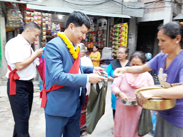 पञ्चदानमा मेयर शाक्य सहभागी हुनुभएपछि दान दिने र लिनेहरूको मुहारमा थप प्रसन्नता थपिएको भाव झल्किन्थ्यो।