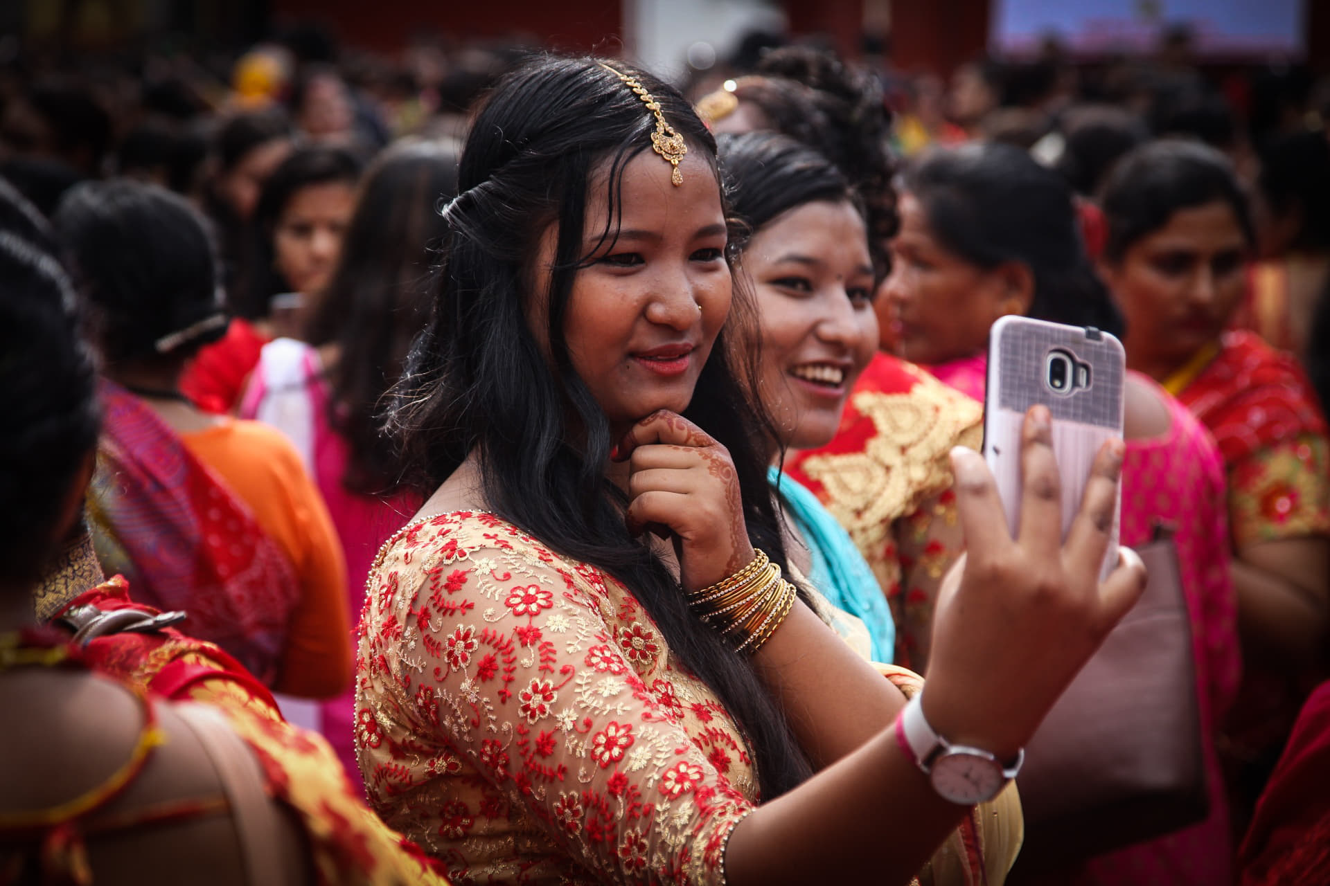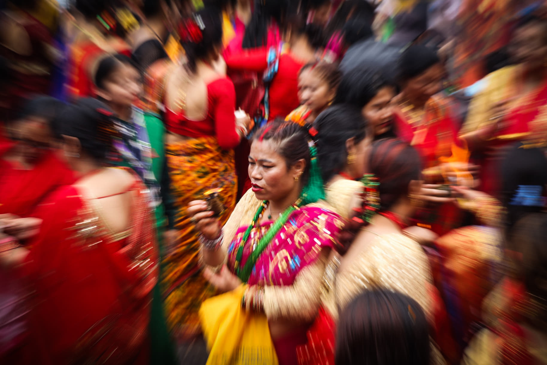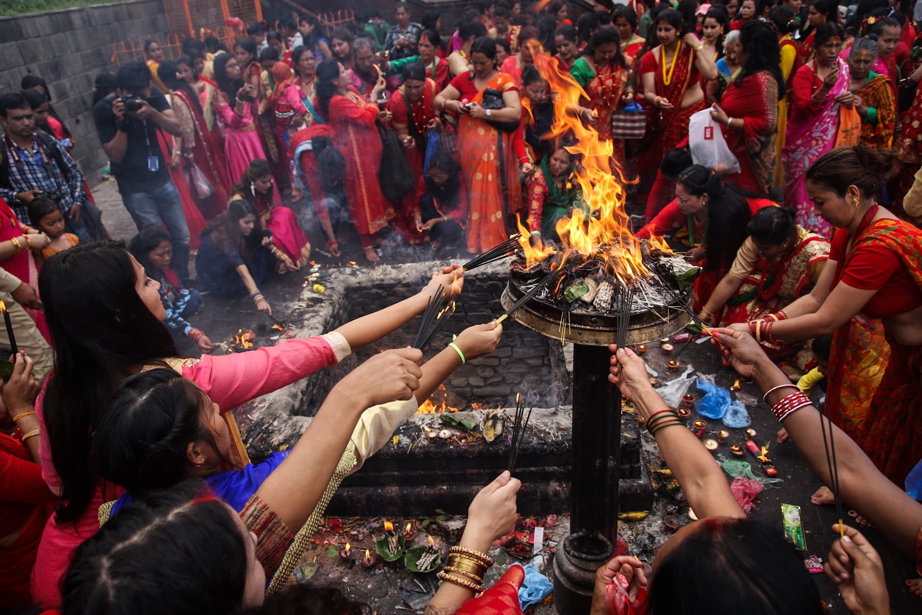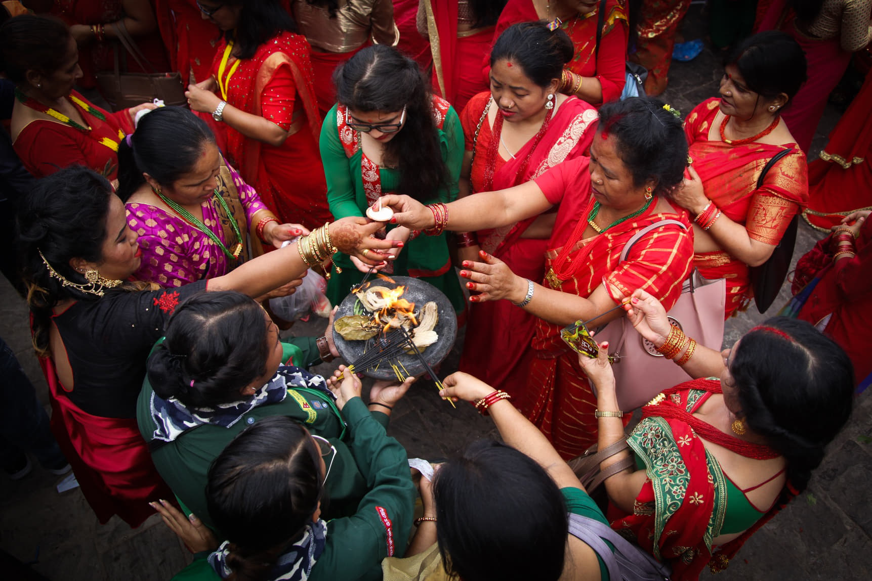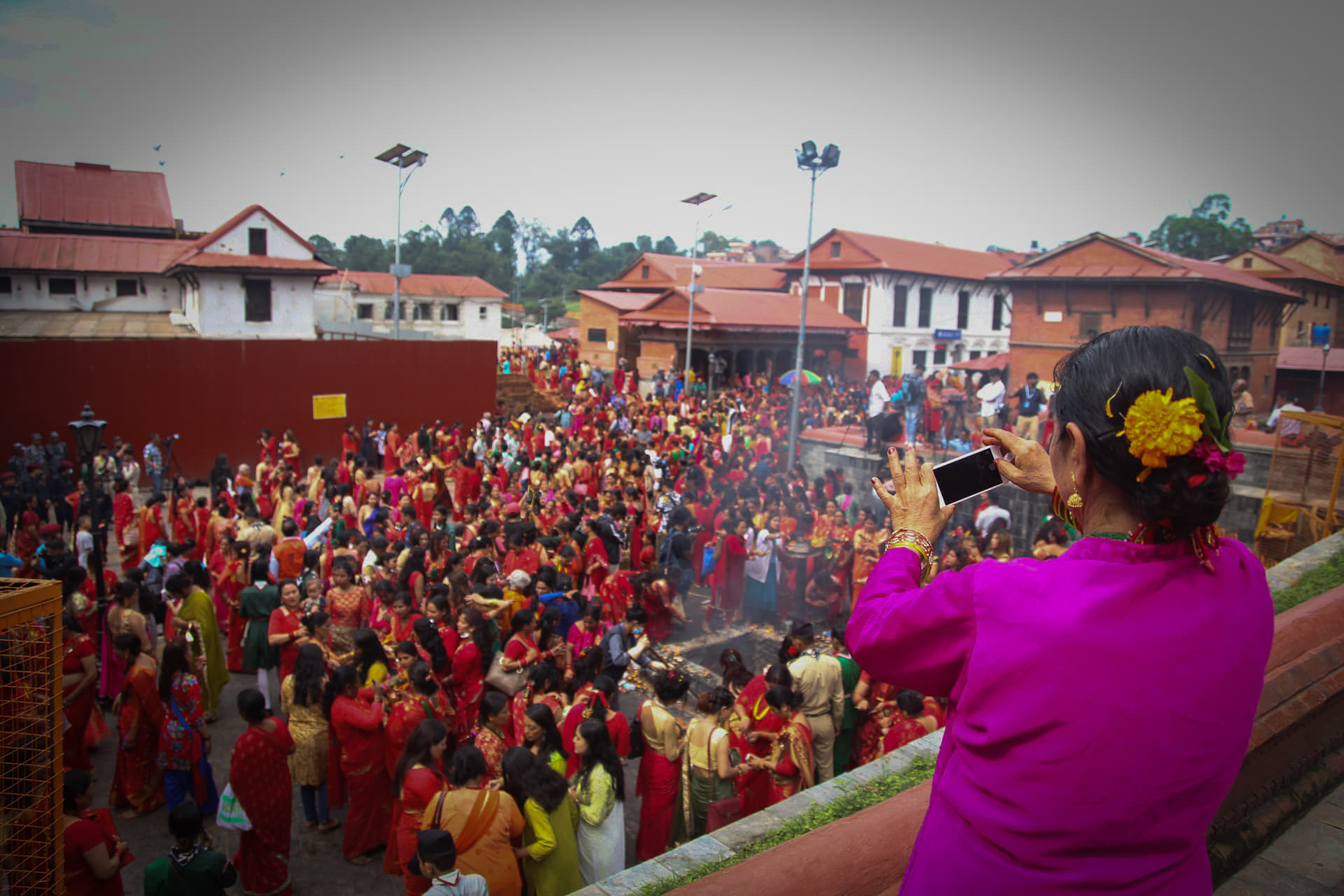 रातो, हरियो र पहेँलो पहिरनमा सजिएका महिला भक्तजनको पशुपति क्षेत्रमा लर्को छ ।