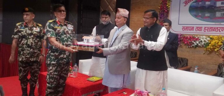 नेपाली सेनाले न्यून पूँजी र छोटो समयका बाबजुद प्रतिकूल मौसममा पनि निर्माण सम्पन्न गर्न सक्नुमा राष्ट्रहित र जनअपेक्षाअनुसारको निष्ठाका कारण भएको जनता आवास कार्यक्रम कार्यदलका अध्यक्ष उपरथी प्रभुराम शर्माले बताउनुभयो।