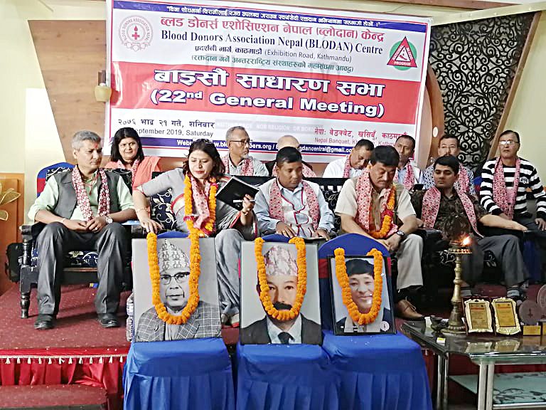 नेपाल समाचारपत्र, काठमाडौं। ब्लड डोनर्स एसोसिएसन नेपाल (ब्लोदान) केन्द्रको २२औं साधारणसभा सम्पन्न भएको छ। ब्लोदानका केन्द्रीय अध्यक्ष ई. सानुबाबु प्रजापतिको सभापतित्व तथा सांसद रामवीर मानन्धरको प्रमुख आतिथ्यतामा शनिबार आयोजित कार्यक्रम सम्पन्न भएको छ।