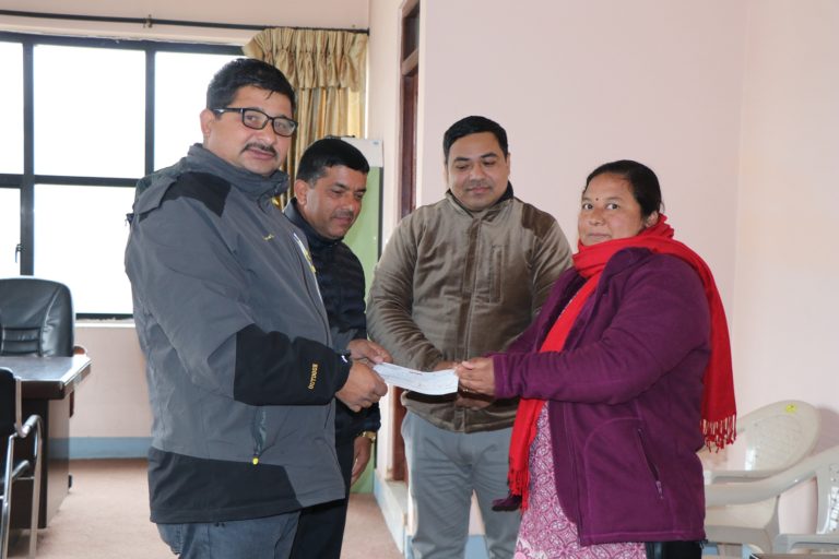 महासंघमा बिहीबार आयोजना गरिएको एक अनौपचारिक कार्यक्रममा महासंघका उपाध्यक्ष विपुल पोख्रेलले हुमागार्इंकी श्रीमती तथा नेपाल पत्रकार महासंघ काभ्रे शाखा उपाध्यक्ष राज्यलक्ष्मी श्रेष्ठलाई ७५ हजार ३ सय ३३ रुपियाँको चेक हस्तान्तरण गर्नुभयो।