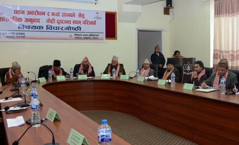 नेपाल प्रज्ञा–प्रतिष्ठान, साहित्य (अनुवाद) विभागद्वारा शुक्रबार ‘पठन अवरोधन र नयाँ ज्ञानको सेतु सांस्कृतिक अनुवाद ः केही दृष्टान्त एवम् परिचर्चा’ विषयक अनुवादसम्बन्धी विचारगोष्ठीको आयोजना गरियो।