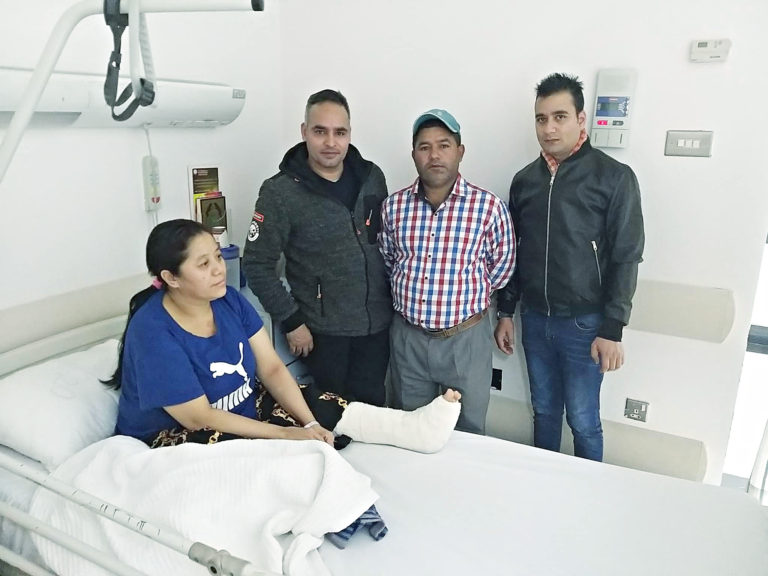 लम्जुङ पुरानाकोट–७ घर भई कुवेतमा करिब ११ वर्षदेखि काम गर्दै आउनुभएकी ४५ वर्षीया उजेली हिँड्दा हिँडदै लडेपछि अरूको सहयोगमा सडकबाटै अस्पताल पुग्नुभएको थियो। हाल फर्वानिया अस्पतालको महिला वार्डमा उपचाररत हुनुहुन्छ।