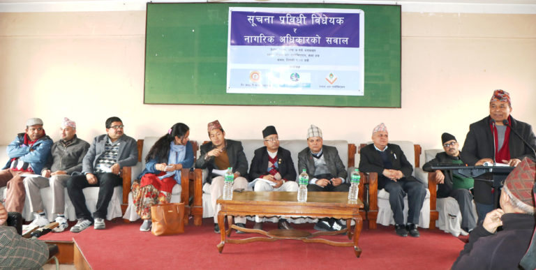 नेपाल पत्रकार महासंघ, नेपाल बार एसोसिएसन तथा गैर सरकारी संस्था महासंघको संयुक्त आयोजनामा सूचना प्रविधि विधेयक र नागरिकको सावल विषयमा अन्तक्र्रिया आयोजना गरेको छ।