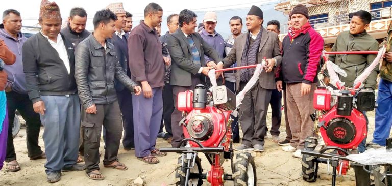 नगरपालिकाले गत वर्ष २३ जनालाई हाते ट्याक्टर वितरण गरेको थियो । हाते ट्रयाक्टर आफ्नो खेत जोत्न र आवश्यकता अनुसार छिमेकीलाई समेत समस्या पर्दा प्रयोग गर्न दिने गरी वितरण गरिएको नगरपालिकाले जनाएको छ ।
