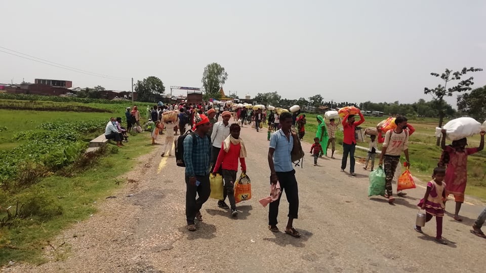‘लकडाउन खुलिहाल्छ कि भनेर केही समय अलिकति जम्मा भएको पैसा खर्च गर्दै बस्यौं, तर तत्कालै खुल्ने सम्भावना देखिएन, बरु आफ्नै घरतिर जाउँ भनेर हिंडेको, कस्तो समस्यामा परियो’ टाउकोमा ठूलो गुण्टा र हातमा ६ वर्षकी छोरी डोहो¥याएका श्रीधन महतोले नेपाल समाचारपत्रलाई भने । उनी जिल्लाकै एक इँटाभट्टामा विगत तीन वर्षदेखि काम गर्दैआएको बताउँछन् । उनका अनुसार यस झण्डमा ठूलो संख्या इँटाभट्टामै काम गर्नेहरुको छ ।