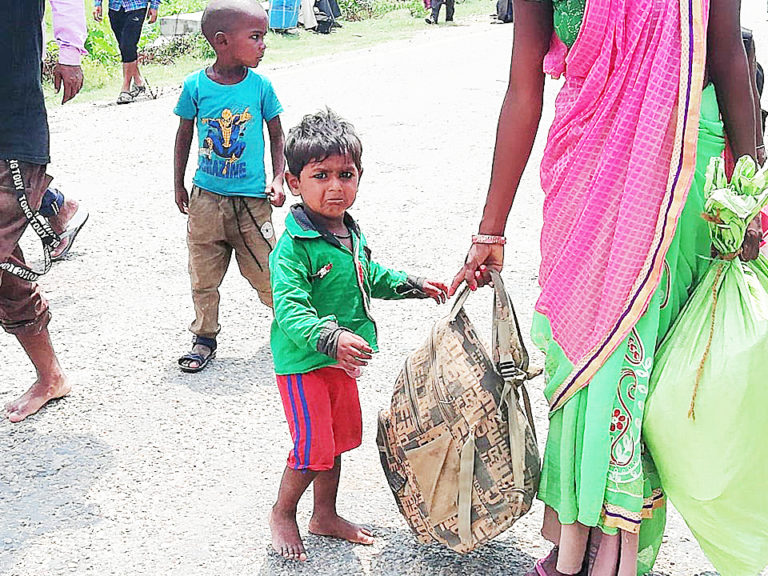 ‘लकडाउन खुलिहाल्छ कि भनेर केही समय अलिकति जम्मा भएको पैसा खर्च गर्दै बस्यौं, तर तत्कालै खुल्ने सम्भावना देखिएन, बरु आफ्नै घरतिर जाउँ भनेर हिँडेको, कस्तो समस्यामा परियो ।’ –टाउकोमा ठूलो गुन्टा र हातमा ६ वर्षकी छोरी डोहो¥याएका श्रीधन महतोले नेपाल समाचारपत्रलाई भने । उनी जिल्लाकै एक इँटाभट्टामा विगत तीन वर्षदेखि काम गर्दै आएको बताउँछन् । उनका अनुसार यस झुुण्डमा ठूलो संख्या इँटाभट्टामै काम गर्नेहरूको छ ।