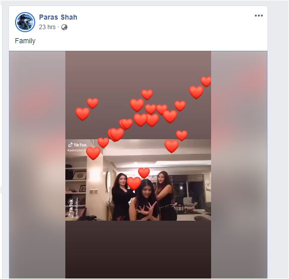 छोरी पुर्णिका र कृतिका शाहको टिकटक एकाउन्टमा राखिएको भिडियो धेरै भए पछी पूर्व युवराज पारस शाहले पनि सामाजिक संजालमा लब साइन सहित उक्त टिकटक भिडियो आफ्नो प्रोफाइलमा राखेका छन ।