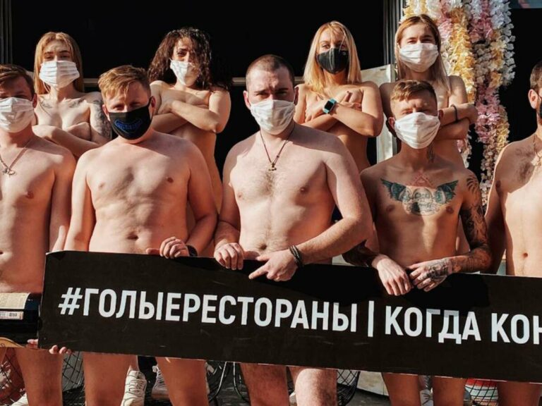 रेस्टुरेन्ट उद्योग जोगाउने अभियान अन्तर्गत ‘ फन्की फुड ११ ’ रेस्टुरेन्टका कर्मचारीहरुले रसियाक ो क्रास्नोदारमा मुखमा मास्क बाँधेर नाँगा तस्वीर खिचाएका छन् । तिनीहरुलाई अनुसरण गर्दै सयौं बार , रेस्टुरेन्ट र क्याफेका कर्मचारीहरुले पनि धमाधम प्लेट , कप ,ससप्यान ,बोटल , वार स्टुल र नेप्किन होल्डरसंगै आफ्ना नाँगो तस्वीर खिेचेर सामाजिक संंजालमा सरकारी नीतिको विरोध स्वरुप अपलोड गर्न थालेको छन् ।