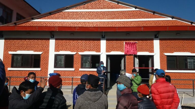 किरातेश्वर साङ दोर्जे जेभिले करिब ९८ लाख तीन हजार नौ सय ११ रुपैयाको लागतमा निर्माण सम्पन्न गरेको उक्त भवन आइओएम का प्रमुख लेरिना ल्याण्डाले गोसाइकुण्ड गाउँपालिका प्रमुख कैसाङ नुर्पु तामाङलाई हस्तान्तरण गर्नुभएको हो । उक्त हस्तान्तरण कार्यक्रममा ओइओएमका टीम पालिका प्रमुख वडा अध्यक्ष रसुवा माविका प्र.अ. तेम्पा रिसाङ घले विद्यार्थि जिसस सदस्य तेम्पा जिएल लगाएतका सरोकारवालाहरुको उपस्थित रहेको थियो ।