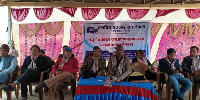 चलचित्र पत्रकार संघ नेपाल मकवानपुर अध्यक्ष मणिराज गौतमको सभाध्यक्षमा सम्पन्न सभामा नेपाल पत्रकार महासंघ महासचिव रमेश बिष्टको प्रमुख आतिथ्यता थियो । सभामा महासंघ केन्द्रीय महासचिव बिष्टले मुलुकमा पूर्णप्रेस तथा अभिव्यक्ति स्वतन्त्रता कायम रहनुपर्ने बताए । महासचिव बिष्टले राज्यबाट प्रेस तथा अभिव्यक्ति स्वतन्त्रतामा आँच पु-याउने कुनै गतिविधि हुन नहुने धारणा व्यक्त गरे ।