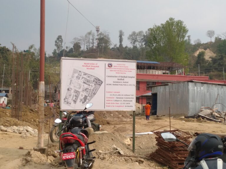कुल एक सय शैयाँ क्षमताको सिन्धुली अस्पतालको नयाँ अत्याधुनिक सुविधा सम्पन्न भवन धमाधम निर्माण भईरहेको छ । संघिय सरकारको भ्याट बाहेक कुल २१ करोड ७० लाख २५ हजार रुपैयाँ लागतमा निर्माण सुरु भएको भवन निर्माण कम्पनी हुनमान कन्ट्रक्सन ललितपुरले भ्याट सहित २६ करोडमा ठेक्का लिएर धमाधम निर्माण गरिरहेको छ ।