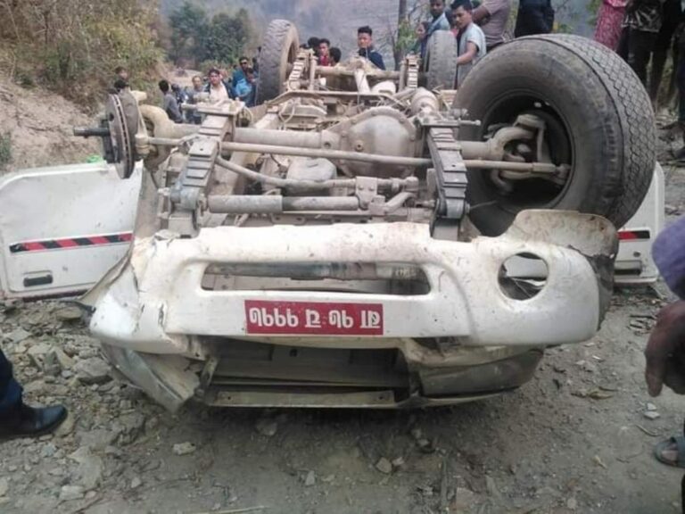 सिन्धुलीको कमलामाई नगरपालिका नं.७ करङडाडा भित्ता स्थित ग्रामिण सडक खण्डमा मंगलवार दिउसो बोलेरो दुर्घटना हुदाँ ४ जनाको मृत्यु भएको छ । अन्य ८ जना घाईते भएका छन् । दुर्घटनामा दुई महिला, एक पुरुष र एक दुई बर्षको बच्चाको घटनास्थलमै मृत्यु भएको छ । सिन्धुली बजारबाट बासकटेरी तर्फ जादै गरेको बा १७ च १११७ नम्बरको बलेरो गाडी सडकबाट अन्दाजी ६० फिट तल खसी दुर्घटना भएको हो ।