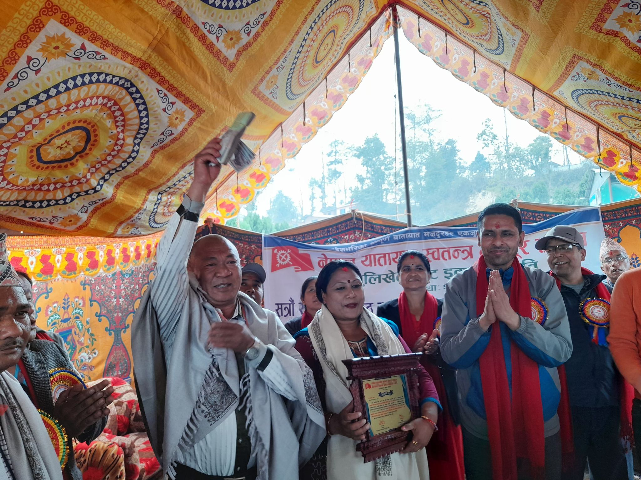नेपाल यातायात स्वतन्त्र मजदुर संगठन धुलिखेल रुट इकाईले आयोजना गरेको कार्यक्रममा जेष्ठ यातायात मजदुर सम्मानबाट चार जना, चालक चार र एक परिचालकलाई सम्मान गरिएको धुलिखेल रुट इकाईका अध्यक्ष अर्जुन लामाले बताउनु भयो । ‘हरेक वर्ष आयोजना गरिएको सम्मान कार्यक्रम गत वर्ष कोभिडका कारण स्थगित भएको थियो सोहि वर्षको समेत गरी यो वर्ष चार जना जेष्ठ यातायात मजदुर र उत्कृष्ट चालक र परिचालकलाई सम्मान गरेका हौं’–अध्यक्ष लामाले भन्नुभयो–‘यसले लामो समयसम्म यहि क्षेत्रमा स्थापित गराउने र सुरक्षित रुपमा सवारी चलाउँदा सम्मानबाट हौसला मिल्ने रहेछ । १९ जना जेष्ठ मजदुरहरुलाई नगद १ लाख ५ हजार सहित दोसल्ला र सम्मानपत्रवाट सम्मान गरिसकिएको उहाँले बताउनु भयो । संगठनले चालक सहित उहाँहरुलाई उत्कृष्ट बनाउन सहयोग पु¥याउने उहाँका श्रीमती सहितलार्य सम्मान गरेको थियो ।