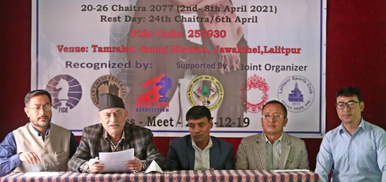 काठमाडौं । गणेशमान सिंह स्मृति फिडे रेटिङ बुद्धिचाल प्रतियोगिता आगामी चैतमा आयोजना हुने भएको छ । आयोजक ललितपुर स्पोर्ट्स क्लब र ताम्रकार समाजले बिहीबार पत्रकार सम्मेलन गर्दै प्रतियोगिता चैत २० देखि २६ गतेसम्म आयोजना हुने जनाएको छ । प्रतियोगितामा विजेयी हुनेले यामाहा सलुटो मोटरसाइकल प्राप्त गर्ने छन् ।