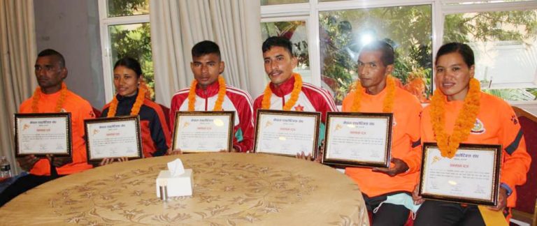१३औं दक्षिण एसियाली खेलकुद (साग) मा एथ्लेटिक्सतर्फ पदक जितेका ८ खेलाडीलाई सोमबार नेपाल एथलेटिक्स संघले नगद पुरस्कार प्रदान गरेको छ ।