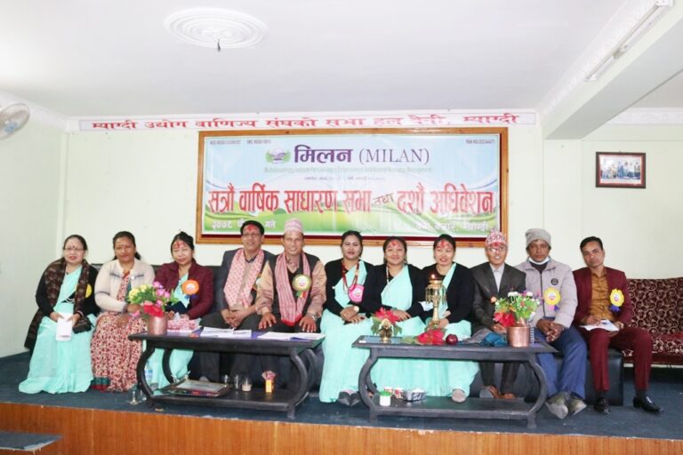 मिलन म्याग्दीको शनिबार बेनीमा सम्पन्न १७औं वार्षिक साधारणसभा तथा १०औं अधिवेशनले कमला बानियाँ थापाको अध्यक्षतामा नयाँ कार्यसमिति सर्वसम्मत चयन गरेको छ । संस्थाको उपाध्यक्षमा दिलमाया बिटालु, सचिवमा तिलकुमारी राना, कोषाध्यक्षमा ज्ञानुकुमारी बानियाँ केसी र सहसचिवमा प्रताप बानियाँ चयन हुनुभएको छ ।