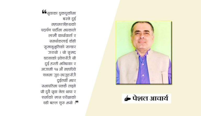 एक महिनायता देशका प्रायः ठूला पार्टीहरूले आफ्नो महाधिवेशन गरे । बीचमा राप्रपाले उसको महाधिवेशन सक्यो, यद्यपि ऊ संसद्मा राष्ट्रिय पार्टी हैसियतमा उपस्थित छैन । तर उसैले चाहिँ नेतृत्व परिवर्तन गरेर देशमा नयाँ सन्देश दियो । एमाले र कांग्रेसका नेताहरूले बोले एकथोक तर गरे अर्कै थोक । ती पार्टीका दोस्रो, तेस्रो र चौथो पुस्ताका भनिएका नेताले आफ्ना पाइन, दर्शन र कार्यशैली देखाउने पउल अवसर हुँदाहुँदै पहिलेकै नेतृत्वलाई त्वम् शरणम् गरी तलुवा चाट्ने काम गरे । यसले तत्–तत् पार्टीका सामान्य भोटरहरूका समेत मन दुखे ।