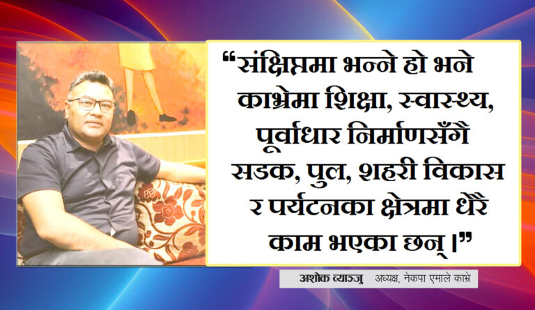 नेकपा एमालेको देशभर एकैसाथ अधिवेशन हुँदै छ । यसै सन्दर्भमा एमाले काभ्रेमा तयारी कहाँ पुग्यो ? जिल्लावासीले अधिवेशनबाट के कस्ता लाभ लिन सक्छन् ? भन्ने विषयमा नेकपा एमाले काभ्रेका अध्यक्ष अशोक व्याञ्जुसँग नेपालसमाचार पत्रकर्मी मोतीराम तिमल्सिनाले गर्नुभएको कुराकानी :