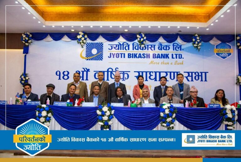 ज्योति विकास बैंकको १४ औं वार्षिक साधारण सभा बैंकका सञ्चालक समितिका अध्यक्ष हरि प्रसादको अध्यक्षतामा सम्पन्न भएको छ । वार्षिक साधारण सभामा अनलाइन (भर्चुअल) प्रविधिमार्फत सहभागी हुने व्यवस्थासमेत गरिएको थियो ।