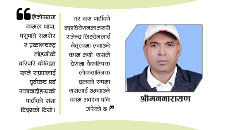 हिजोसम्म कमल थापा, पशुपति शमशेर र प्रकाशचन्द्र लोहनीकै वरिपरि केन्द्रित रहने राप्रपालाई पूर्वपञ्च एवं राजावादीहरुको पार्टीको संज्ञा दिइएको दियो । तर यस पार्टीको महाधिवेशनमा जसरी राजेन्द्र लिङ्देनलाई नेतृत्वमा ल्याउने काम भयो, यसले देशमा वैकल्पिक लोकतान्त्रिक दलको रुपमा यसलाई उभ्याउने काम अवश्य पनि गरेको छ । साझा विवेकशील पार्टीभित्र अन्तरकलह तथा पार्टी अध्यक्ष रवीन्द्र मिश्रको अस्थिर राजनीतिक अडानका कारण यो पार्टी असामयिक पतनको सिकार भएका कारण पनि युवाहरुको निम्ति राप्रपा एउटा प्लेटफर्म बन्न सक्छ ।