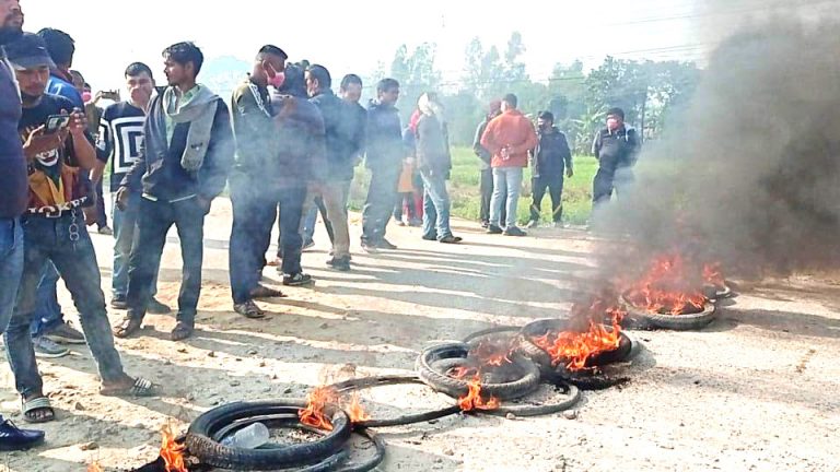 बाँकेको खजुरामा सडक बनाउनका लागि सडकजाम गरिएको छ । नेपालगन्ज–बर्दिया सडक खण्डको खजुरा बजार क्षेत्रको १ हजार ८ सय मिटरको फोरलेन सडक निर्माणमा बेवास्ता गरिएपछि स्थानीयवासीले टायर बालेर विरोध गरेका हुन् ।