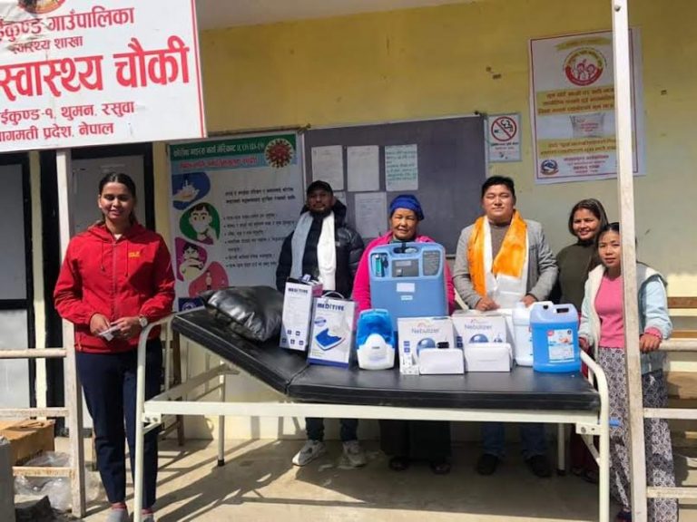 स्वास्थ्य सामग्रीमा अक्सिजन कन्सन्ट्रेसनमेसिन १ थान, नेवुलाइजर मेसिन २ थान, पल्स अक्सिमिटर २ थान, फोल्डिङ बेड १ थान, बेड म्याट्रिस १ थान, सिरानी १ थान सर्जिकल माक्स २ बक्स, सेनिटाइजर २ जार रहेको छ । स्वास्थ्य र शिक्षित समाज निर्माण अभियानका अभियानमा लामो समयदेखि लागिपर्नुभएकी प्रतीमाले स्थानीय जनप्रतिनिधि र स्थानीयवासीको उपस्थितिमा सो सामग्री वितरण गर्नुभएको हो ।