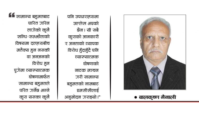 एमसीसीलाई अनुमोदन गर्ने सवालमा धारा २७९ को प्रावधानहरुलाई प्रयोग गर्दा व्याख्यात्मक घोषणाद्वारा आफूलाई मन परेको कुनै अमूक चिज पारित गराउन पाइन्छ भनी संविधानको कुन प्रावधानले राजनीतिक व्यवसायीलाई निर्दिष्ट गरेको छ ? यदि कुनै पनि जटिल विषय वा जनजनको असहमति देखिएको विषयलाई संसद्बाट पारित गराउने नाउँमा यस्तै–यस्तै हतकण्डा अपनाउने हो भने संवैधानिक आवरणभित्र आफू रहेको छु भन्दै गरिने नाटकहरु पनि मञ्चन गर्न छाडिदिए हुन्छ ।