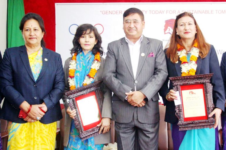 यस्तै, नेपाल ओलम्पिक कमिटीअन्तर्गत्को वोमेन्स एन्ड स्पोर्टस् कमिसनले दुई महिला खेलकर्मीलाई सम्मान गर्यो । अन्तर्राष्ट्रिय नारी दिवसको अवसरमा कमिसनले तेक्वान्दोकी पूर्व खेलाडी सुधा सेन मल्ल र राष्ट्रिय खेलकुद परिषद्की कर्मचारी जुलुम गिरीलाई नगदसहित सम्मान गरियो । कमिटीका अध्यक्ष जीवनराम श्रेष्ठले गिरी र मल्ललाई २५ हजारसहित सम्मान गरेका थिए ।
