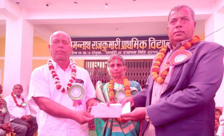 उहाँले विद्यालयलाई निःशुल्क जग्गा प्रदान गर्नुभएपछि अहिले त्यस जग्गा नेपाल सरकारको ६० लाखको विशेष अनुदान चारकोठे पक्की विद्यालय भवन निर्माण भएको छ । विद्यालयलाई निःशुल्क जग्गा प्रदान गरेर सहयोग गरेको भन्दै मंगलबार उहाँ र उहाँकी धर्मपत्नी राजकुमारी साहलाई विद्यालयले उद्घाटन समारोहमा फूलमाला र दोसल्ला ओढाएर सम्मान गरिएको विद्यालयका प्रधानाध्यापक श्रीकृष्ण यादवले जानकारी दिनुभयो ।