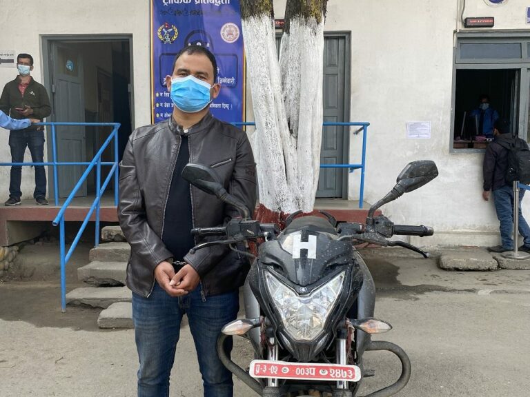 उनको साथमा प्रदेश ३-०२, ००३ प २४७३ नम्वरको कालो रङको २०० सीसीको पल्सर एनएस मोटरसाइकल फेला परेको छ । यो नम्बर नक्कली रहेको र सिंहको साथमा रहेको मोटरसाइकलको वास्तविक नम्बर भे १० प ४३६२ र धनी आशिष गुरूङ रहेको प्रहरीले जनाएको छ ।