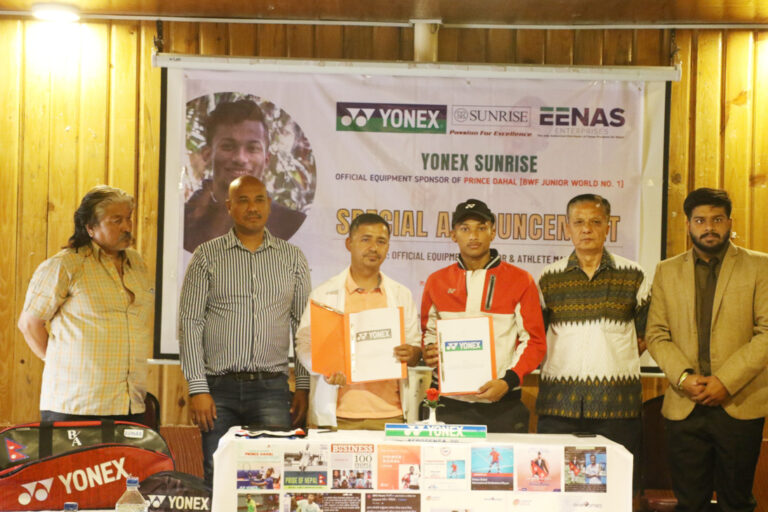 विश्व जुनियर ब्याडमिन्टनको वरीयताको शीर्षस्थानमा रहेका नेपाली ब्याडमिन्टनका युवा स्टार प्रिन्स दाहाललाई मंगलबार योनेक्स सनराइजले सम्झौता गरेको छ । योनेक्स सनराइजले प्रिन्सलाई चार वर्षको लागि सम्झौता गरेको हो । सम्झौतामा योनेक्स सनराइजको तर्फबाट नेपालका लागि आधिकारिक बिक्रेता इनास इन्टरप्राइजेजका प्रोपाइटर राजु बास्तोला र प्रिन्स दाहालले हस्ताक्षर गर्दै आदान–प्रदान गरे ।
