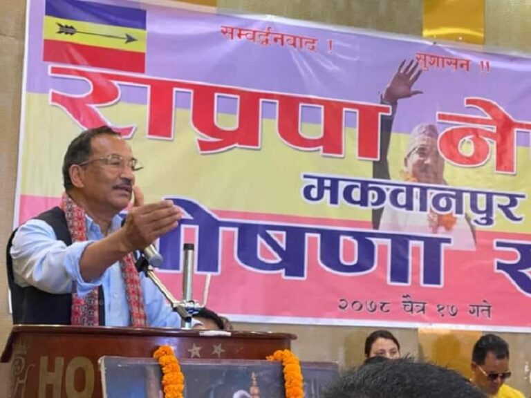 मकवानपुरले हरेक अप्ठ्यारोमा आफूलाई साथ दिएको भन्दै हाल पनि साथ दिन उहाँले आग्रह गर्नुभयो । कार्यकर्तालाई उहाँले राजासँगको भेटदेखि राप्रपा नेपाललाई आफूले पुनर्जागृत गरेको कथा सुनाउन भ्याउनुभयो । ‘राजा, महलमा परिवारसँग बस्ने, देशविदेश घुम्ने, अनि पानीको फोहरा खाएर हामी आन्दोलन गरिरहने,’ उहाँले कार्यकर्तालाई भन्नुभयो– ‘हरसम्भव प्रयास गर्दा पनि युवालाई राजसंस्थाप्रति आकर्षण गर्न सकिएन, अनि छाड्नुपर्यो ।