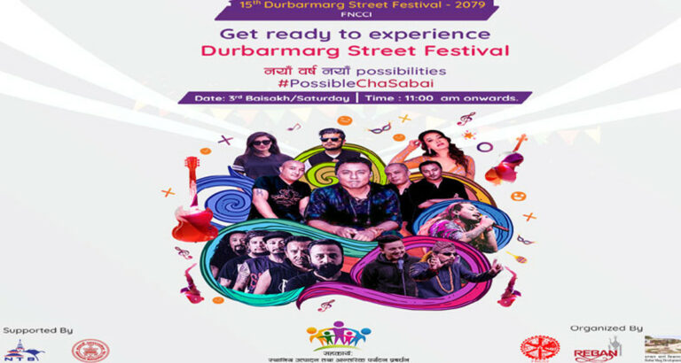 कोभिड–१९ ले थलिएको लघु, घरेलु, साना तथा मझौला उद्यम एवं पर्यटन उद्योग पुनरूत्थान गर्ने उद्देश्यले राजधानीको दरबारमार्गमा ‘१५ औँ दरबारमार्ग सडक महोत्सव’ आयोजना भएको छ ।‘स्थानीय उत्पादन तथा आन्तरिक पर्यटन प्रवद्र्धन’ भन्ने मूल नाराका साथ आयोजित महोत्सवमा नेपाली उत्पादन, स्थानीय परिकार र नेपाली कला संस्कृतिको प्रदर्शन गरिएका छन् ।