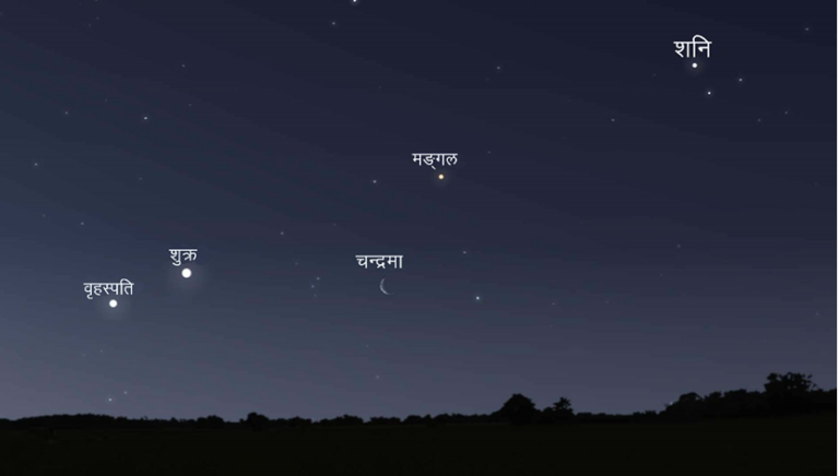 हाम्रो मध्य वैशाख देखि वृहस्पति, शुक्र, मङ्गल तथाशनिग्रहहरू एउटै पङ्तिमा लामवद्ध भएर आकाशमा नृत्य गरीरहेको प्रतित हुन्छ । चन्द्रमा पनि अर्ध चन्द्रकाररूपमा स्वयम् पनि यस ब्रह्माण्डीय कवाजको मनोरम दृश्य सँग जोडिन आइपुग्नेछ ।