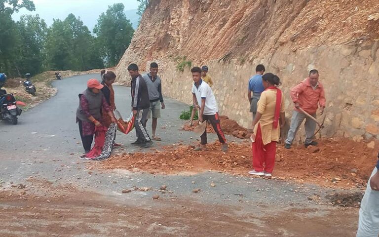 पर्वतको कुश्मा नगरपालिका–३ दुर्लुङलाई सदरमुकाम कुश्मा बजारसँग जोड्ने दुर्लुङ–कुश्मा सडकखण्डको केही भाग हालै निर्वाचित भएका जनप्रतिनिधिले नै सफा गरेका छन्।